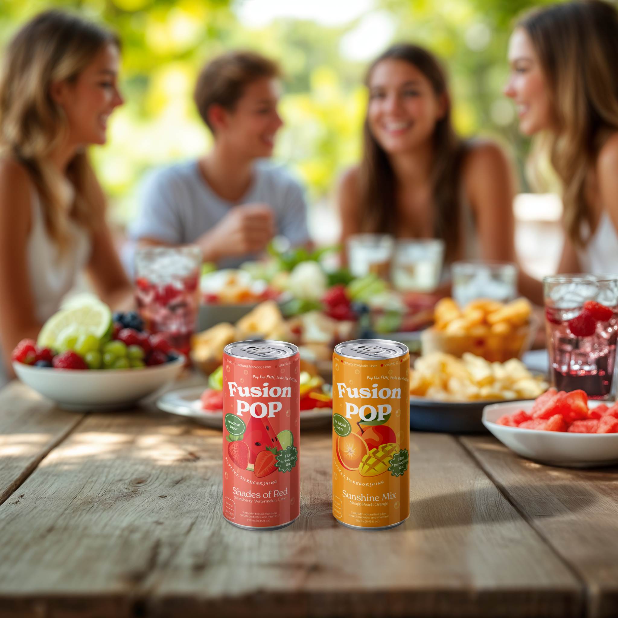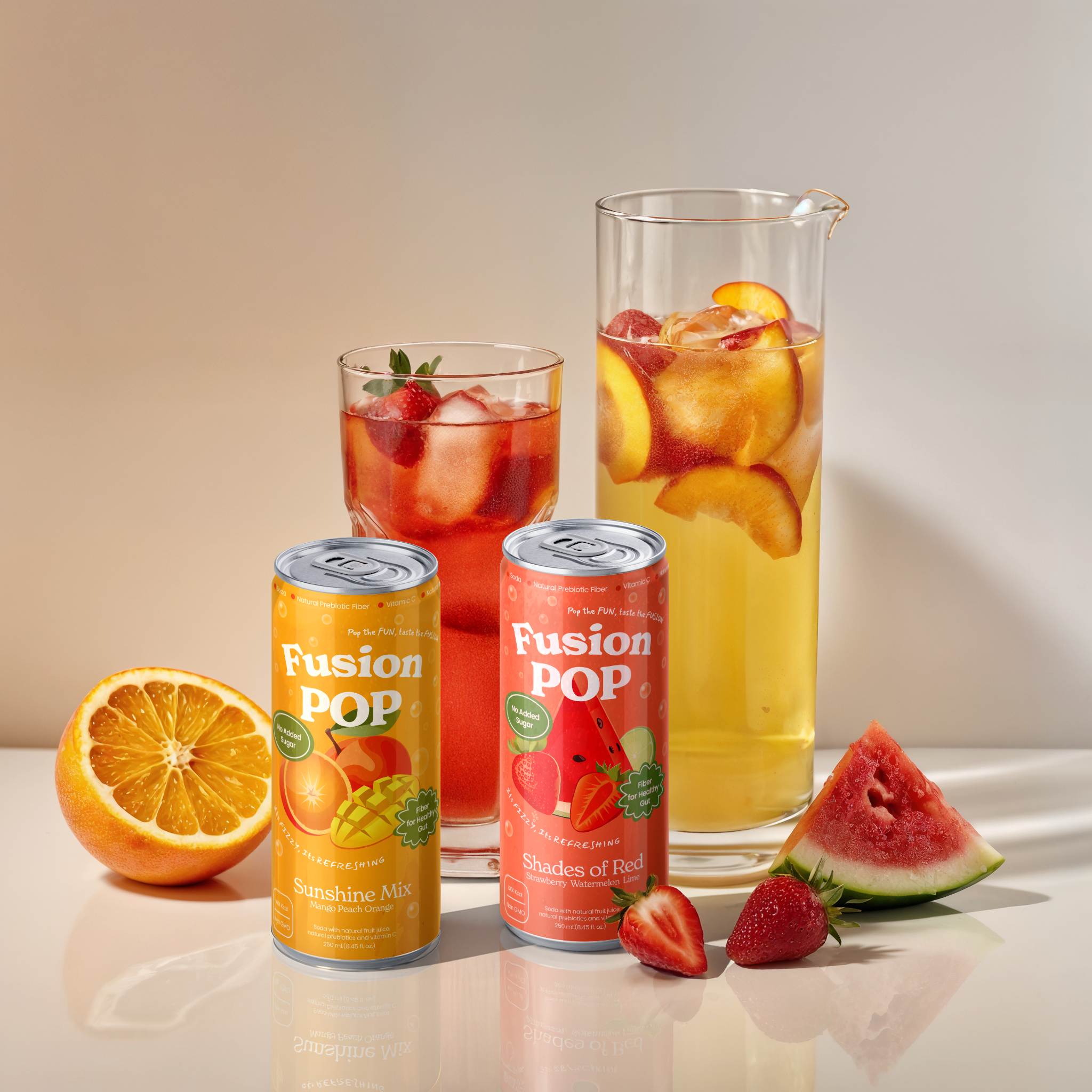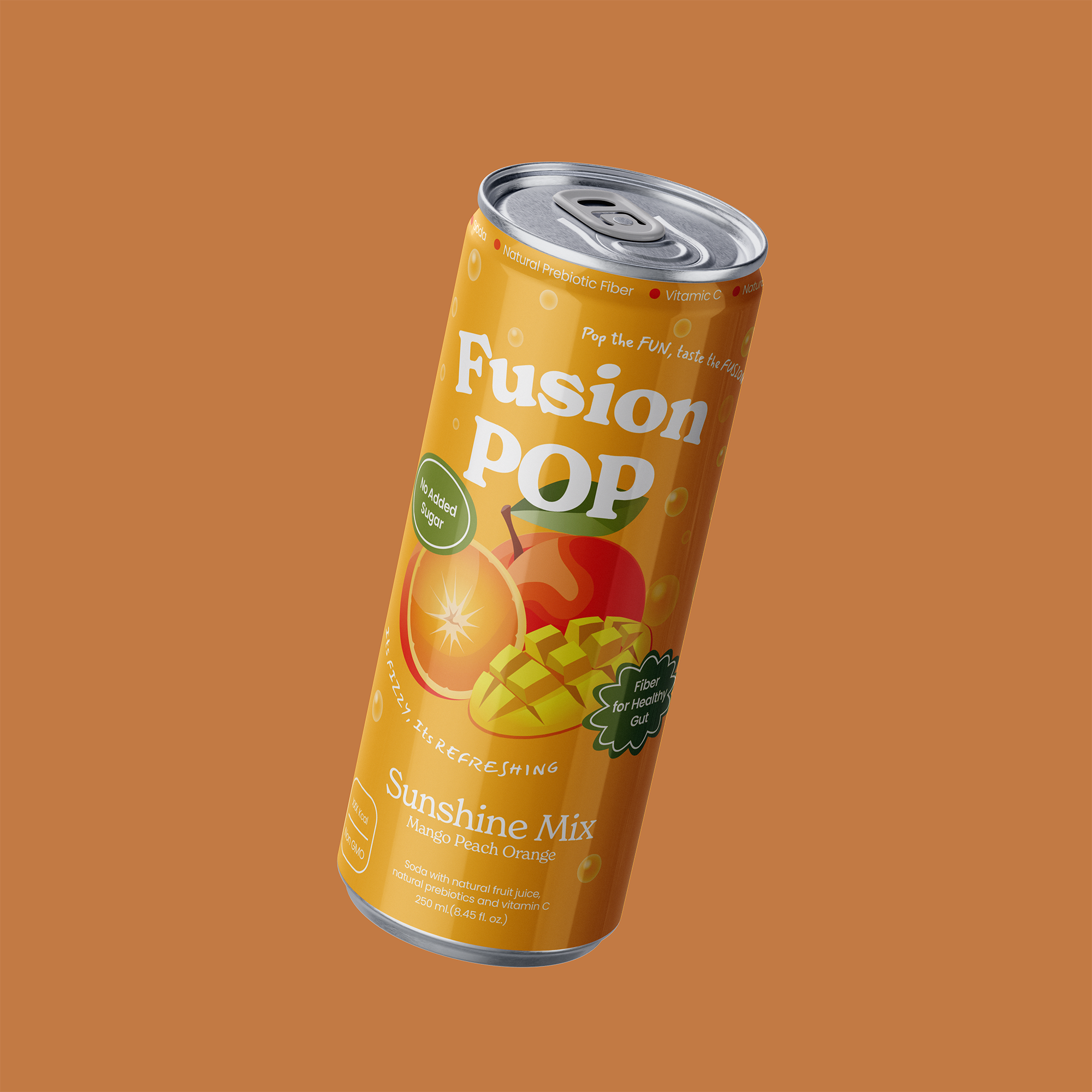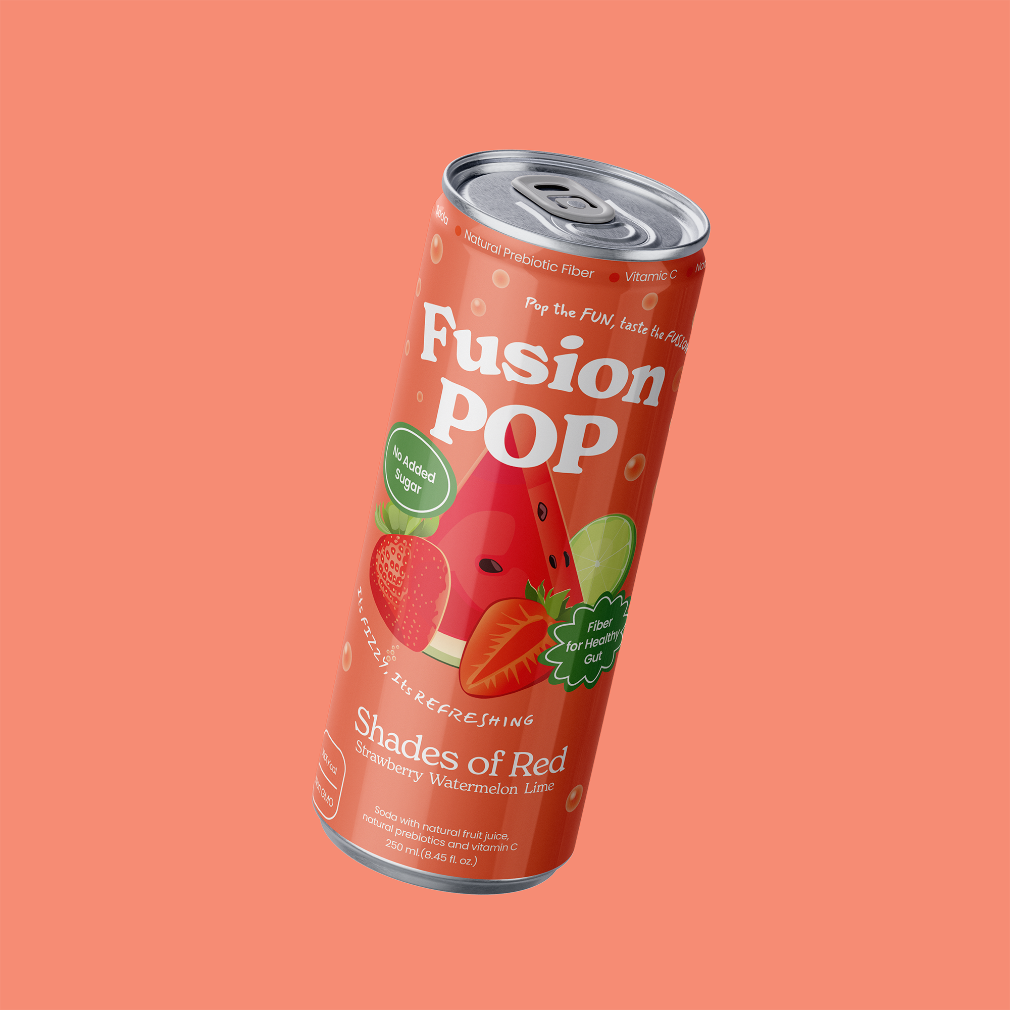 Fusion Pop is a delicious fusion of fruit flavors and sparkling refreshing soda, boosted with prebiotic fiber for gut health and vitamin C for immune support.